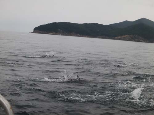 まず1つ目に、牟岐大島の近くでイルカの大群が現れました!