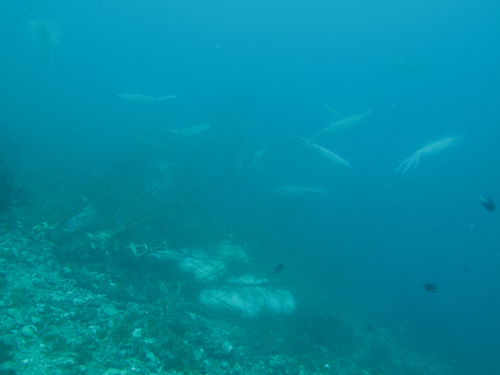 ムギオトシではイサキの若魚の群れ、アジの群れが迫力があって真に迫りくるものがありました。釣り好きのダイバーには、たまりませんね。かなりの魚影の濃さですよ。
