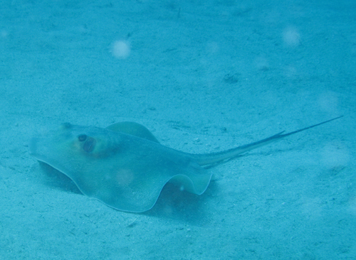砂地にはアカエイ、ヤッコエイが隠れていて、ダイバーが近寄ると