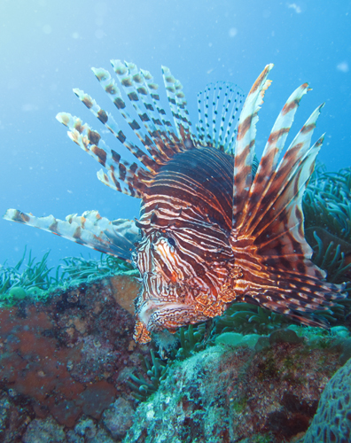 でっかいハナミノカサゴが3匹ホバリング☆豪華な羽を広げて華やかでした。