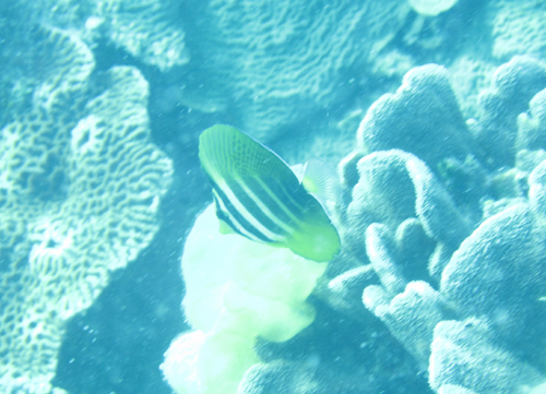 サンゴの周辺にはソラスズメダイやチョウチョウウオ、トゲチョウチョウウオなどたくさんいました。