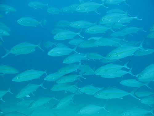 トノサマダイ、タカベの群れ、フエヤッコダイなど黄色が目立つ魚がいました。