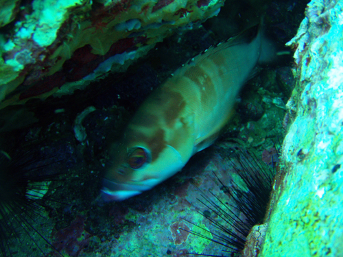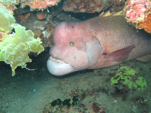 特大サイズのハナミノカサゴが2匹、大きなコブダイも2匹いました。