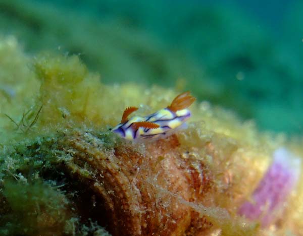 そして最後に船の側まで進んだ時にゲストの一人に呼ばれ進んでみるとすごく小さなウミウシ!小さくてわかり辛かったですが、5mmぐらいのヒュプセロドーリス・ゼフィラの幼体のようです!ゲストさん、さすがウミウシですね、よく見つけれました!誰かはっきりわかる人がいれば教えてくださいね~