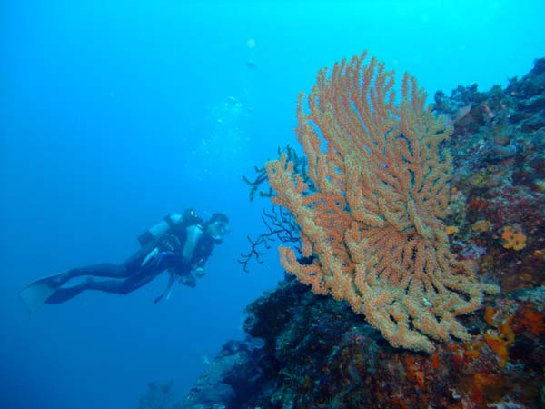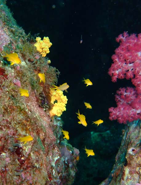 根の上にはマツバスズメダイ、キンギョハナダイ、ソラスズメダイ、コロダイなどが群れていました。