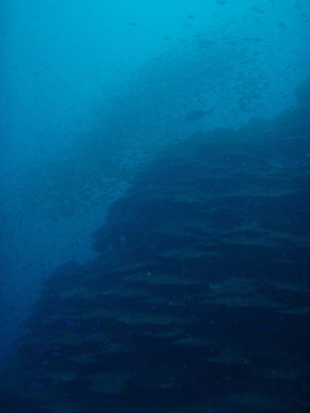 ここでもクロホシイシモチが群れ、その側でアジの大群に遭遇!更にツムブリの群れやカツオも泳いでましたよ!