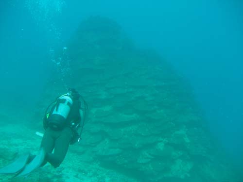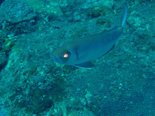 サンゴにはクロホシイシモチ、ソラスズメダイ、アジがたくさん群れていましたよ。