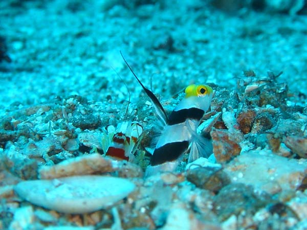 浅場ではクビアカハゼのペアにコシジロテッポウエビの共生をじっくり観察!ハゼがエビに警戒信号を送っているのを見て助け合いって素晴らしいって思いました!