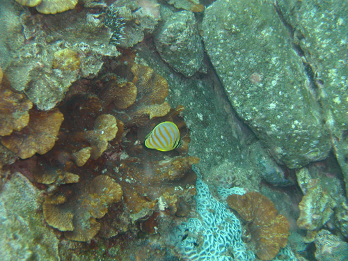 サンゴにはチョウチョウウオの赤ちゃん達の姿も♪