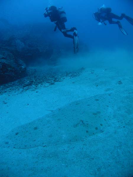 さらに砂地には僕が両手を広げたサイズのツバクロエイが砂の中に!巨大です!!