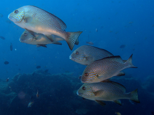 クロホシイシモチの超大群! こっちはアカエソ! アジの群!おいしそー(^u^)