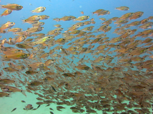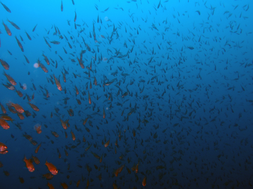 多くのポイントでネンブツダイやクロホシイシモチ」の大群が目立ちます!