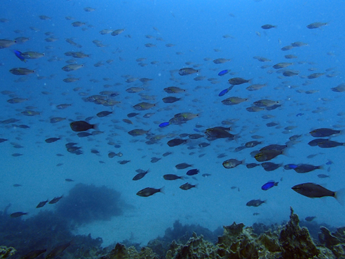 あとは、大きなアオブダイやここでもカンパチの大群が目につきましたね
