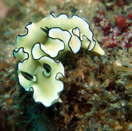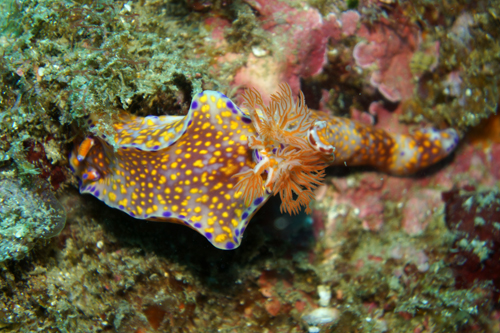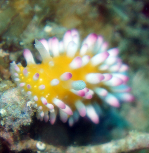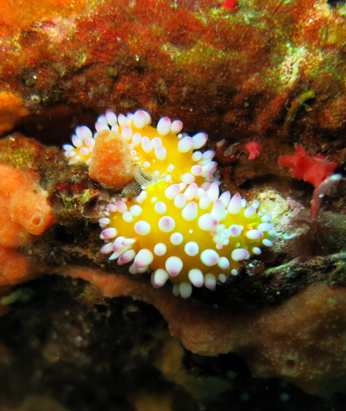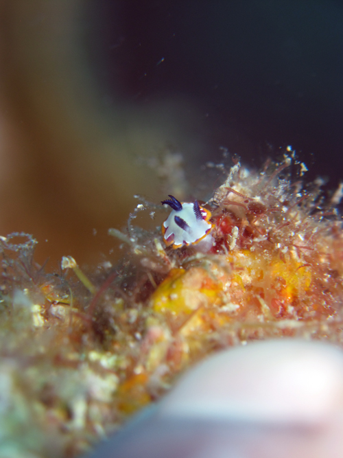 内湾ではフジナミウミウシ発見!ちなみに手前でぼけてるの僕の人差し指!ごっつい小さいやつです