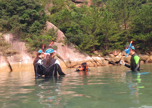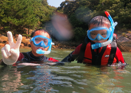 大島桟橋での体験シュノーケリングの写真をご覧ください(^v^)
