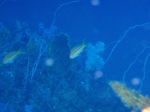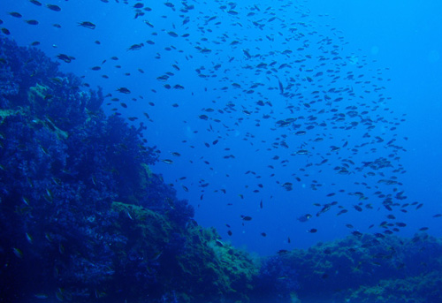 今日もソラスズメダイがいたる所で群れていて、フタスジリュウキュウスズメダイなど