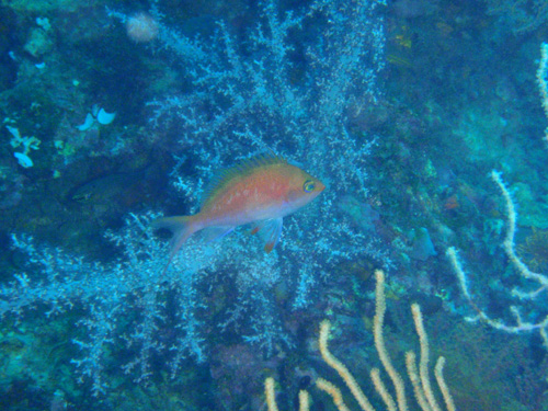 北西の根に行ってみるとネンブツダイとソフトコーラルたちがもの凄く綺麗に映えてました☆
