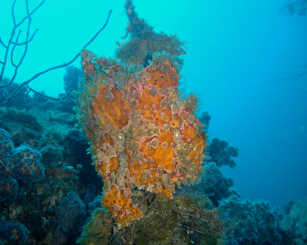 またまた、ウツボがカサゴと一緒に仲良くカイメンに入ってました(^O^)