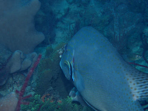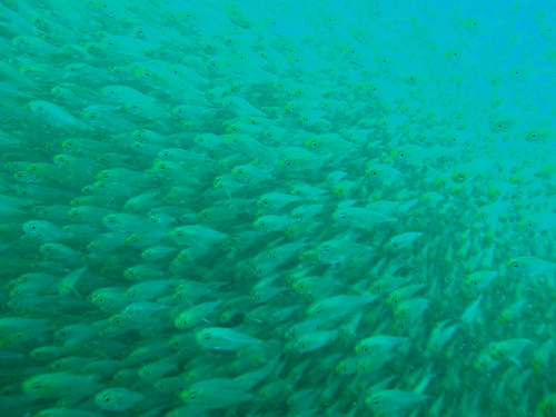 潜降してすぐ深場へ向かう途中にアオブダイの大群がワサワサと通り過ぎました。