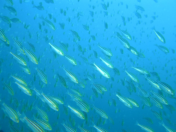 アジの群れもきれいでした~。少し奥へ行くと貫禄のあるイシダイの老魚が数匹ウロウロしていました。
