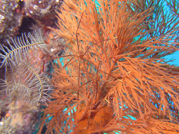 そのすぐ近くでは、オルトマンワラエビが2匹並んで潜んでいました。