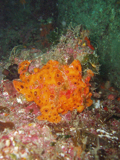 5mくらいの水深の浅瀬には真っ黒なカエルアンコウも。
