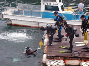 陸上班と水中班に分かれて港内を清掃!今までのクリーンナップではないぐらいのゴミの量で大変!