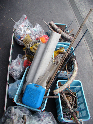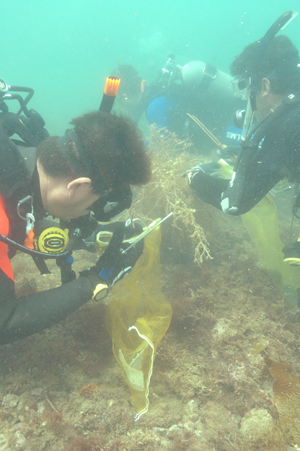 海の中では釣り糸や釣り具、漁網や空き缶、ビンなどが多く中にはコンロやタイヤなど不思議なゴミも…