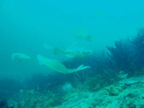 まずはハナイロウミウシ!綺麗でサイズも小さく可愛い!そして北に進むとイサキとネンブツダイの群れ!その横をアオリイカが通過したので期待をしていましたが残念ながら産卵シーンは見れませんでした!次に潜ったチームは産卵シーン見れたらしいですよ~
