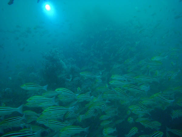 今日もキンメモドキの大群が出迎えてくれ、イサキ、アジの群れにハマチいました。