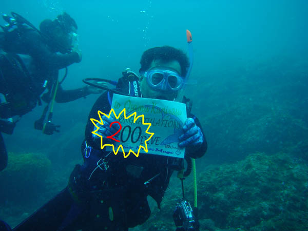 それと今日のゲストのO・Kさんが祝200本記念ダイブ!しっかりカードを持ちすぎて数字の2が…(修正しておきましたよ~)