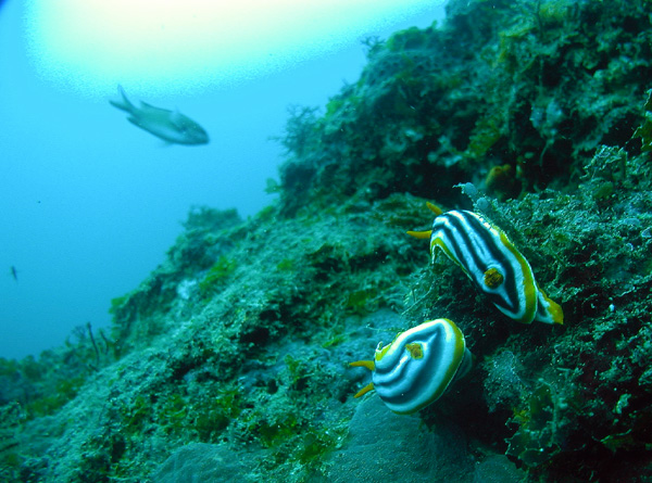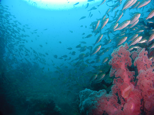 水深5m付近にソラスズメダイとコロダイ、キンギョハナダイが群れ、すごくきれい!癒されますね~