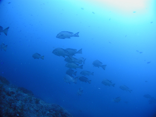 キンメモドキの大群にオオモンハタが5匹ぐらい付きまとっていたり、アジとイサキの大群が入り乱れてたりしました!