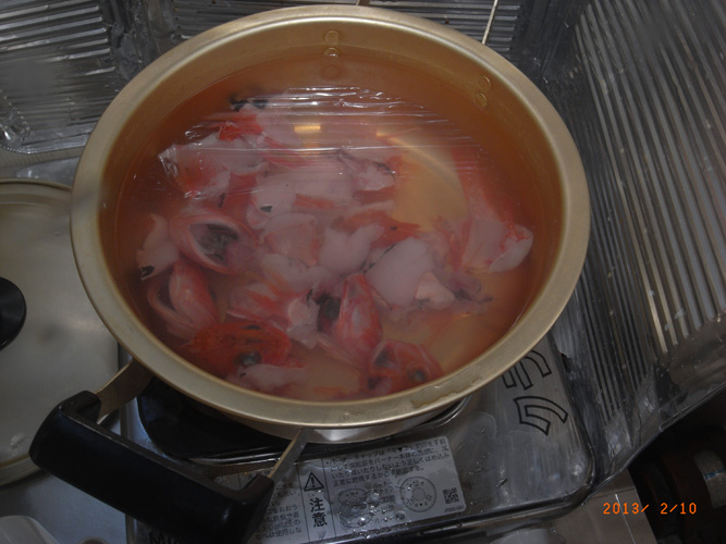 本日の温かいお味噌汁は・・・カサゴのお汁です。