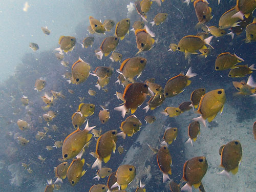 アジ、スズメダイ、大群のタカベ、イシダイ