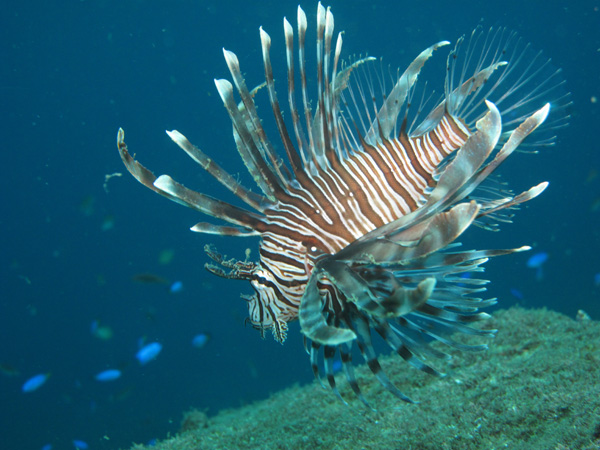 アンカー近くでは、イセエビ、大きなハナミノカサゴと幼魚がいました。