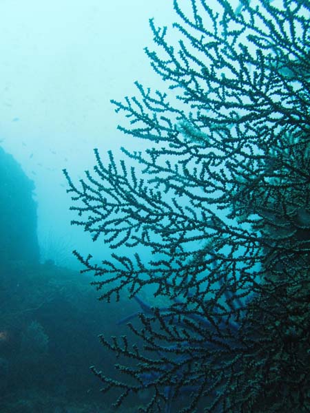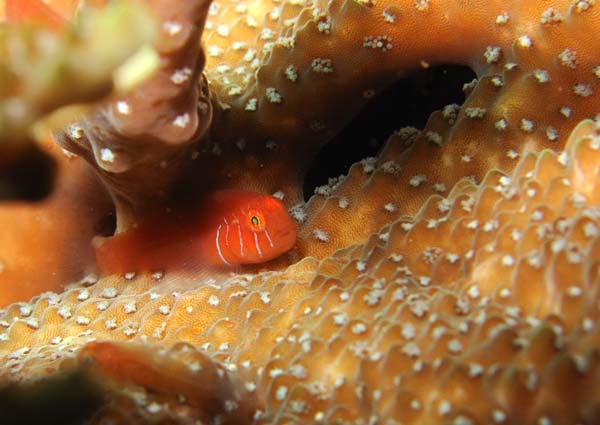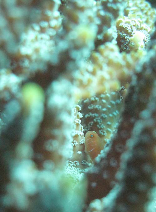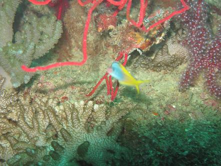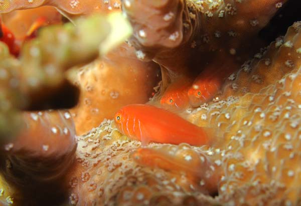 深場のウミトサカにはスケロクウミタケハゼが