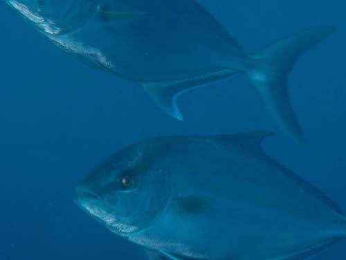 こちらではアジとイサキの大群をでっかいブリが先頭に、その後ろを少し小さめの
