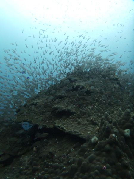 中層を見上げるとタカサゴも群れて行ったり来たりしていました。