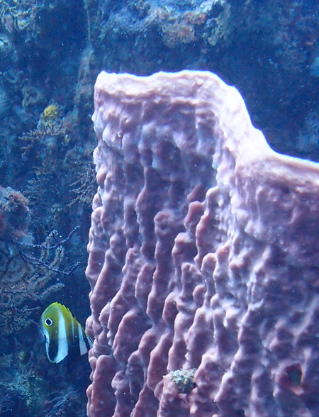 スリバチカイメンにはカサゴとチョウチョウウオが