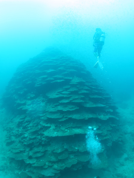 もう、エントリーする前から水底は見えておりエントリーすると千年サンゴ丸見え(笑)