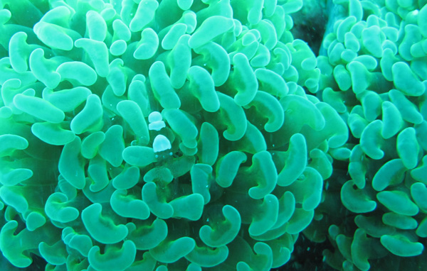 サンゴにはヒメイソギンチャクエビ。