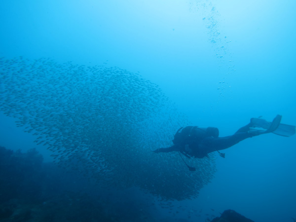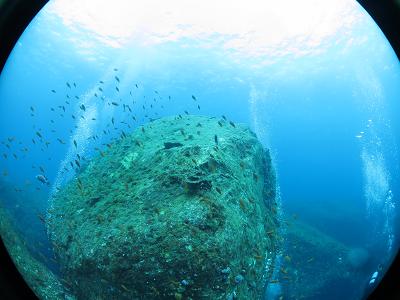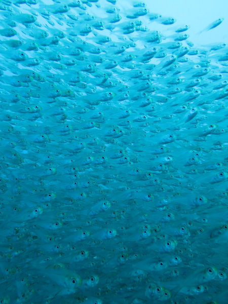 ダイ、ソラスズメダイが大きな大きな群れをなして幻想的な画になっております☆