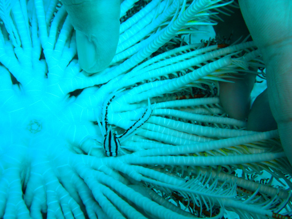 ラッパウニにしがみつく!?ゼブラガニもいました。