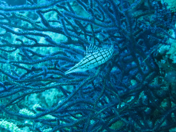サンゴの間にはアケボノチョウチョウウオ、ヤリカタギ、ツミツキトノサマダイ達の幼魚、