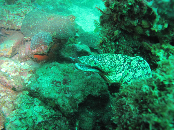 岩の隙間には大きなハナミノカサゴ、ニラミギンポ、