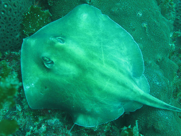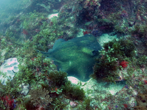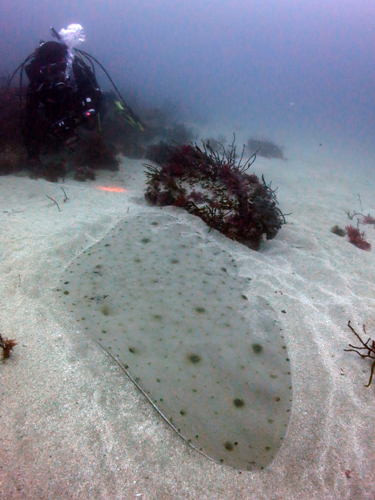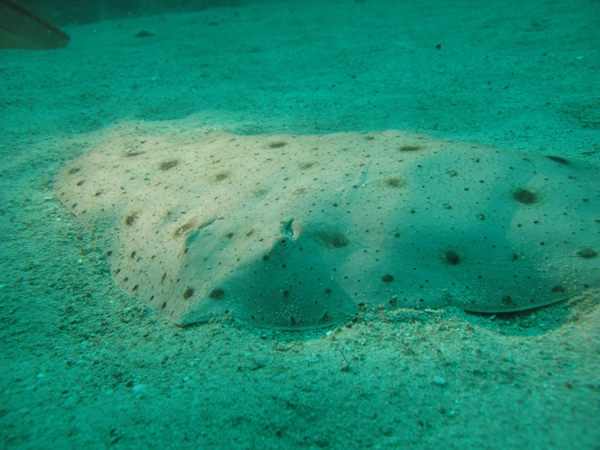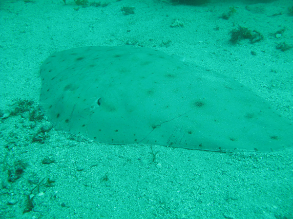 砂地チェックに行くと、大きなツバクロエイを発見(*^。^*)