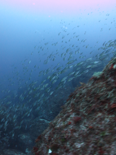最後は浅瀬でキンギョハナダイ、ソラスズメダイ、コロダイの群にまみれました!