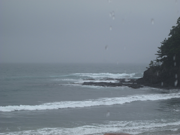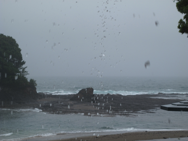 今朝は肌寒く、大雨、そして波も少々高い・・・(ーー;)