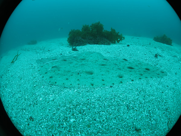 砂地には大きなヒラメが砂をかぶって隠れていたり。